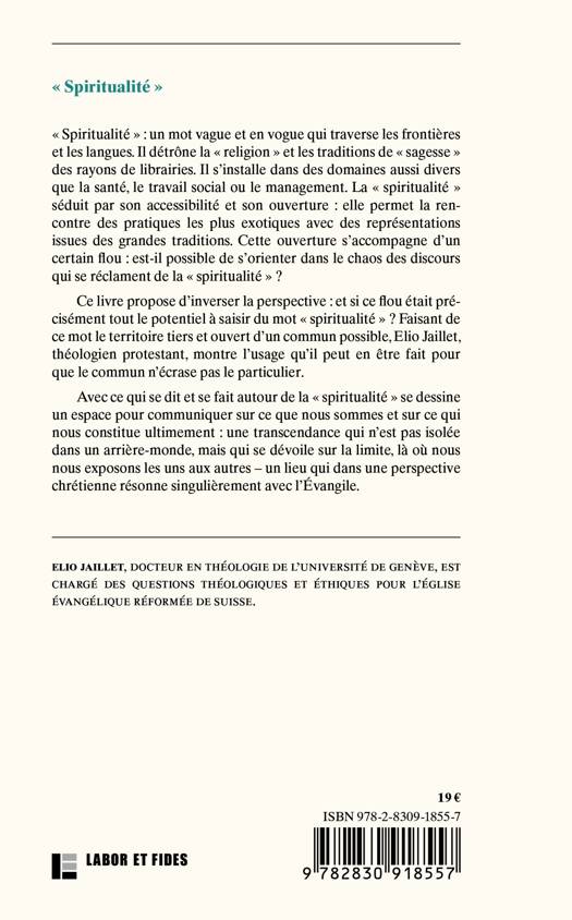 « Spiritualité » : un mot à succès qui traverse les frontières et les langues. Il détrône la « religion » et les traditions de « sagesse » des rayons de librairies. Il s’installe dans des domaines aussi divers que la santé, le travail social ou le management. La « spiritualité » séduit par son accessibilité et son ouverture : elle permet la rencontre des pratiques les plus exotiques avec des représentations issues des grandes traditions. Elle permet de parler de manière très personnelle de la transcendance, sous la forme d’une expérience qui ne peut que s’exprimer sur le registre de l’intime. Cette ouverture s’accompagne d’un certain flou : est-il possible de s’orienter dans le chaos des discours qui se réclament de la « spiritualité » ? Ce livre propose d’inverser la perspective : et si ce flou était un aspect crucial de ce qu’est la « spiritualité » ? L’indice que l’on a affaire ici à une réalité qui s’offre à une interprétation commune et ouverte. Dans la perspective protestante assumée par l’auteur, cette ouverture est à mettre en lien avec l’événement fondamental de la foi chrétienne : la mort et la résurrection du Christ, comme mise en lumière de l’ouverture de la personne humaine à Dieu, de l’ouverture aux personnes entre elles, ainsi qu’aux autres vivants. Une ouverture qui demande à être interprétée toujours à neuf dans le concert de la pluralité des voix qui y trouvent un moyen pour s’exprimer. Un livre original qui propose une définition rigoureuse d’un mot en vogue, et envisage ses chances et ses limites.