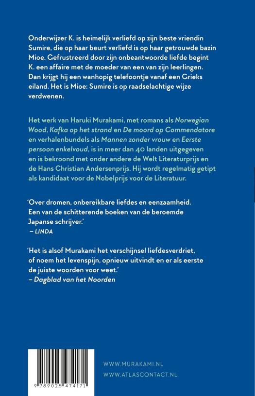 Onderwijzer K. is heimelijk verliefd op zijn beste vriendin Sumire, die op haar beurt verliefd is op haar getrouwde bazin Mioe. Gefrustreerd door zijn onbeantwoorde liefde begint K. een affaire met de moeder van een van zijn leerlingen. Dan krijgt hij een wanhopig telefoontje vanaf een Grieks eiland. Het is Mioe: Sumire is op raadselachtige wijze verdwenen.