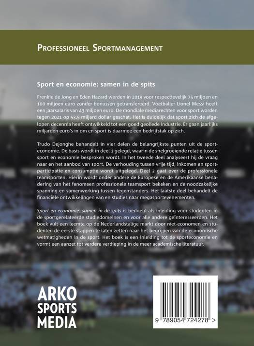 Sport en economie: samen in de spits is bedoeld als inleiding voor studenten in de sportgerelateerde studiedomeinen en voor alle andere geïnteresseerden. Het boek vult een leemte op de Nederlandstalige markt door nieteconomen en stu denten de eerste stappen te laten zetten naar het begrijpen van de economische wetmatigheden in de sport. Het boek is een inleiding tot de sporteconomie en vormt een aanzet tot verdere verdieping in de meer academische literatuur.