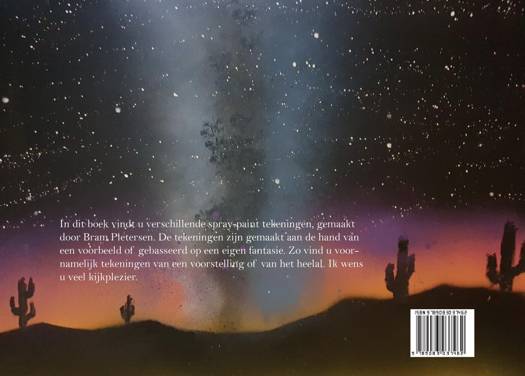 In dit boek vindt u verschillende spray-paint tekeningen, gemaakt door Bram Pietersen. De tekeningen zijn gemaakt aan de hand van een voorbeeld of gebasseerd op een eigen fantasie. Zo vind u voornamelijk tekeningen van een voorstelling of van het heelal. Ik wens u veel kijkplezier.