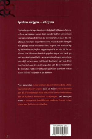 Over het boek "Het onbewuste is gestructureerd als taal", aldus een fameuze frase van Jacques Lacan. Geen wonder dat het spreken een voorname rol speelt binnen de psychoanalyse. Maar de analyticus is minstens zo geïnteresseerd in wat tussen de regels niet gezegd wordt en waar de tekst hapert. Het primaat ligt bij de betekenaar, bij het 'zeggen op zich', en niet bij de betekenis. Om die reden heeft de psychoanalyse een sterk gevoel voor taal ontwikkeld - voor woordspelingen, voor ritme, voor stijl, kortom, voor het literair boetseren van taal. Deze essaybundel gaat in op alle aspecten van de psychoanalyse die te maken hebben met taal en geeft een overzicht van de meest recente inzichten in dit domein.