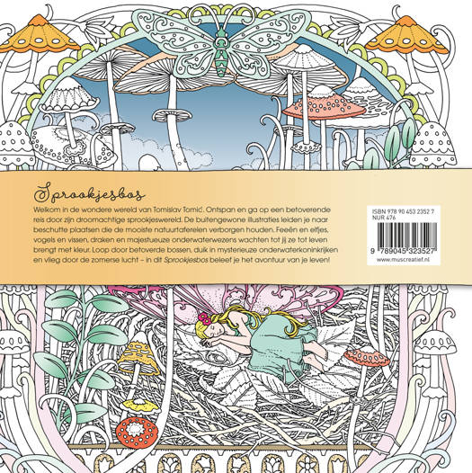 Welkom in de wondere wereld van Tomislav Tomić. Ontspan en ga op een opmerkelijke reis door zijn droomachtige sprookjeswereld. De buitengewone illustraties van Tomić leiden je naar beschutte plaatsen die tot de verbeelding spreken: van zachte wolken tot prachtige diepten. Schelpen en zeealgen, draken en herten, schurken en dwergen, en majestueuze onderwaterwezens wachten tot jij ze tot leven brengt met kleur – je loopt door betoverde bossen, duikt in mysterieuze onderwaterkoninkrijken en beleeft het avontuur van je leven!