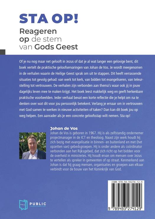 Of je nu nog maar net gelooft in Jezus of dat je al wat langer een gelovige bent, dit boek vertelt de praktische geloofservaringen van Johan de Vos. Je wordt meegenomen in de verhalen waarin de Heilige Geest sprak om uit te stappen. Dit heeft verrassende situaties tot gevolg gehad: van werk tot kerk, van bidden tot evangeliseren, van teleurstelling tot vertrouwen. De verhalen zijn verbonden aan thema’s waar ook jij in jouw dagelijks leven mee te maken krijgt. Het boek leest makkelijk weg en geeft herkenbare praktische voorbeelden. Ieder verhaal bevat een korte reflectie die je helpt om na te denken over wat dit voor jou persoonlijk betekent. Verlang je ernaar om in vertrouwen met God samen te werken in nieuwe activiteiten of taken? Dan kan dit boek jou op weg helpen. Een aanrader als je een concrete geloofsstap wilt nemen. Sta op!