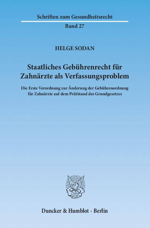 Die vorliegende Schrift untersucht die Frage, inwieweit die GOZ-Novelle von 2011 mit den verfassungsrechtlichen Vorgaben vereinbar ist. Für diese Prüfung ist insbesondere das Grundrecht der Berufsfreiheit maßgebend, vor allem in seiner Funktion als Abwehrrecht. Eine verfassungsrechtliche Rechtfertigung von Eingriffen in dieses Grundrecht scheidet hier schon deshalb aus, weil der Bund nicht die notwendige Verbandskompetenz zur Regelung der zahnärztlichen Gebühren besitzt. Darüber hinaus hält sich die GOZ-Novelle nicht an die Vorgaben in 15 des Gesetzes über die Ausübung der Zahnheilkunde (ZHG) als Ermächtigungsgrundlage. Damit verstößt die Novelle gegen Art. 80 Abs. 1 GG, der Anforderungen für den Erlass von Rechtsverordnungen aufstellt. Künftige Regelungen der GOZ müssen vor allem beachten, dass nach den Vorgaben des 15 Satz 3 ZHG die Vergütungen der einzelnen Leistungen den berechtigten Interessen der Zahnärzte und ihrer Patienten Rechnung zu tragen haben; Belange staatlicher Beihilfestellen und privater Krankenversicherungsunternehmen sind nicht zu berücksichtigen.