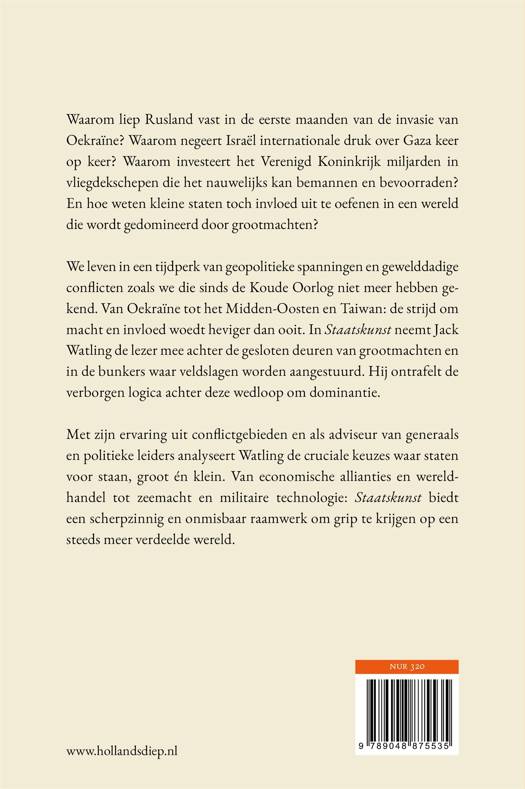 Met zijn ervaring uit conflictgebieden en als adviseur van generaals en politieke leiders analyseert Watling de cruciale keuzes waar staten voor staan, groot én klein. Van economische allianties en wereldhandel tot zeemacht en militaire technologie: Staatskunst biedt een scherpzinnig en onmisbaar raamwerk om grip te krijgen op een steeds meer verdeelde wereld.