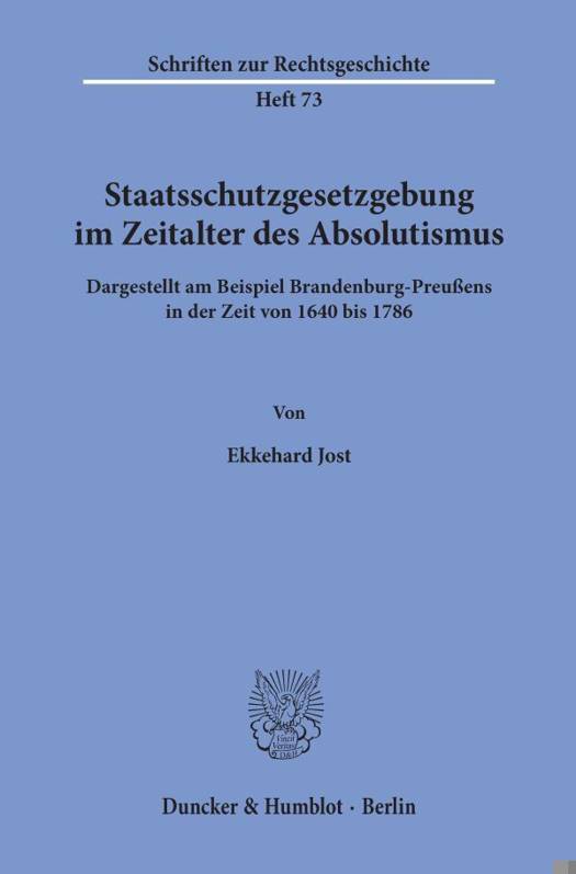 Aufgabenstellung des vorliegenden Bandes ist die Untersuchung der so bezeichneten »Staatsschutzgesetzgebung« in einem der bedeutendsten Territorialstaaten des Heiligen Römischen Reiches Deutscher Nation; Untersuchungszeitraum ist das Zeitalter des Absolutismus. Nach der Begründung der zeitlichen Eingrenzung folgt die Definition des Begriffes der »Staatsschutzgesetzgebung« für den Untersuchungszeitraum. Weil die Darstellung im wesentlichen auf einer Auswertung der Primärquellen beruht, wird daran anschließend kurz auf die Gesetzgebungspraxis der damaligen Zeit eingegangen.