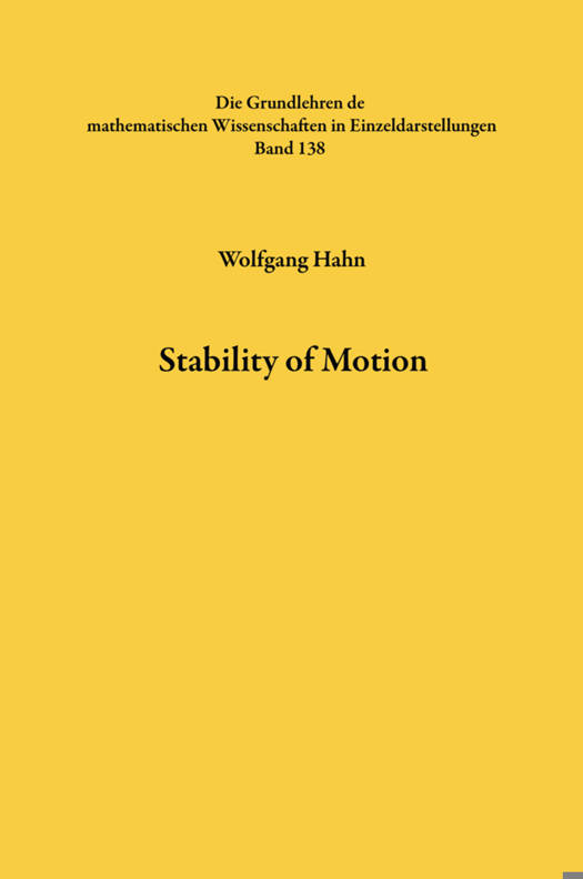 The theory of the stability of motion has gained increasing signifi- cance in the last decades as is apparent from the large number of publi- cations on the subject. A considerable part of this work is concerned with practical problems, especially problems from the area of controls and servo-mechanisms, and concrete problems from engineering were the ones which first gave the decisin' impetus for the expansion and modern development of stability theory. In comparison with the many single publications, which are num- bered in the thousands, the number of books on stability theory, and especially books not \\Titten in Russian, is extraordinarily small. Books which giw the student a complete introduction into the topic and which simultaneously familiarize him with the newer results of the theory and their applications to practical questions are completely lacking. I hope that the book which I hereby present will to some extent do justice to this double task. I haw endeavored to treat stability theory as a mathe- matical discipline, to characterize its methods, and to prove its theorems rigorollsly and completely as mathematical theorems. Still I always strove to make reference to applications, to illustrate the arguments with examples, and to stress the interaction between theory and practice. The mathematical preparation of the reader should consist of about two to three years of university mathematics.