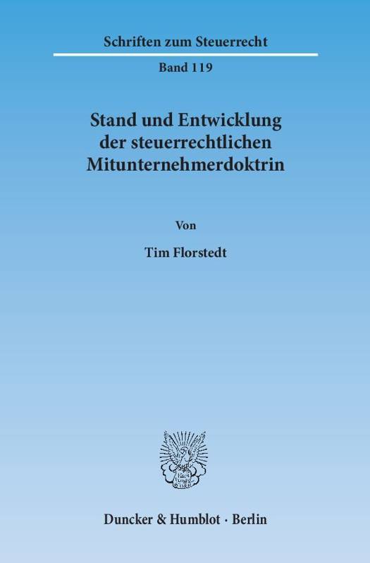Für die Steuerrechtswissenschaft des 20. Jahrhunderts war die Mitunternehmerdoktrin eine wichtige Konstante. Das richterliche Dogma ist bis zur Stunde niemals ernstlich in Frage gestellt worden. Die vorliegende Abhandlung soll diese Lücke in der Steuerrechtswissenschaft schließen. Sie referiert den Stand und die Entwicklung der Mitunternehmerdoktrin seit 1926. Dabei werden die Querbezüge zu den zivilrechtlichen Vorbedingungen sowie zur Diskussion über die steuerrechtliche Subjektivität von Personengesellschaften hergestellt, bevor zu einer steuerrechtsdogmatischen und theoretischen Kritik übergegangen wird. Die Arbeit will Auskunft darüber geben, worin heute entbehrliche und worin sinnvolle Theorieinhalte der Mitunternehmerlehre zu sehen sind. Dabei werden rechtsmethodische Fragen v.a. zur Typuskonzeption, die rechtspraktische Bedeutung der Mitunternehmergrundsätze, aber auch deren historischen Wurzeln mit in die Betrachtung einbezogen.