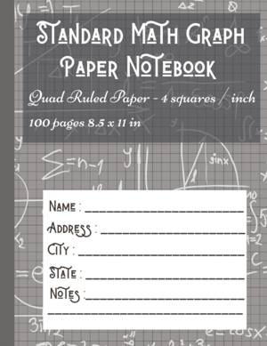 Blank quad ruled with four squares per inch 4x4 with plenty of space for journaling, doodling, writing notes, solve math problems, geometry, algebra, chemistry, and school notes;