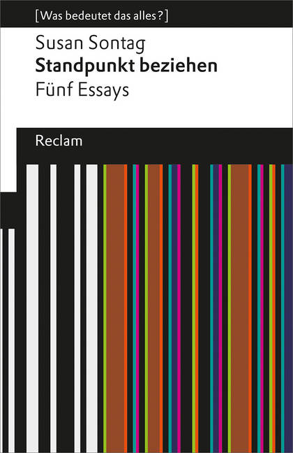 Der Band versammelt wichtige kulturtheoretische Essays: »Gegen Interpretation«, »Über Schönheit« sowie »Fotografie. Eine kleine Summa«. Hinzu kommen zwei explizit politische Texte: »Das Foltern anderer betrachten« und vor allem »Der 11.9.01«, ein hellsichtiger Angriff gegen die irrationale Politikerrhetorik unmittelbar nach 9/11, für den sie in heftigster Weise attackiert wurde.
