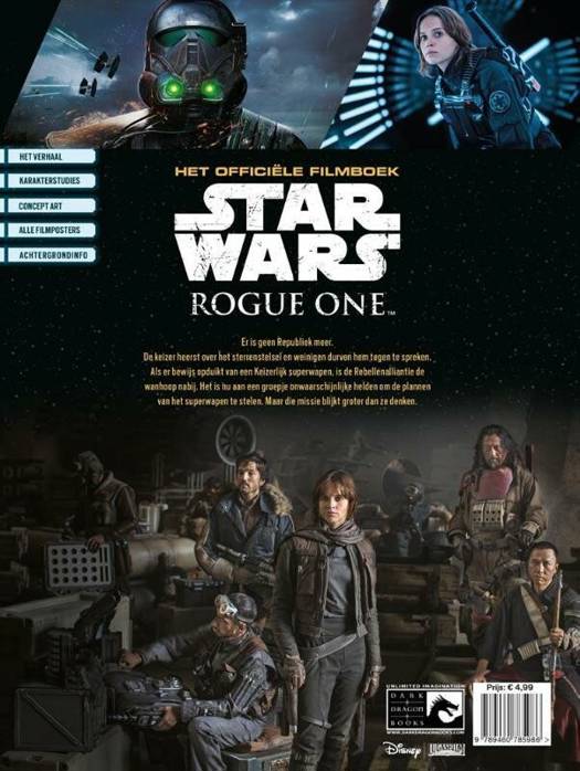 Jyn Erso, is een rebellensoldaat en een crimineel. Ze staat voor haar grootste uitdaging ooit als Mon Mothma haar de opdracht geeft om de plannen voor de Death-Star te stelen. Samen met een paar Rebellen, een meesterzwaardvechter en enkele opstandelingenstrijders, wacht Jynn een grote verrassing. Dit officiele filmboek bevat: Prachtige foto's, Karakterstudies, Interviews, Concept art en Behind the scenes
