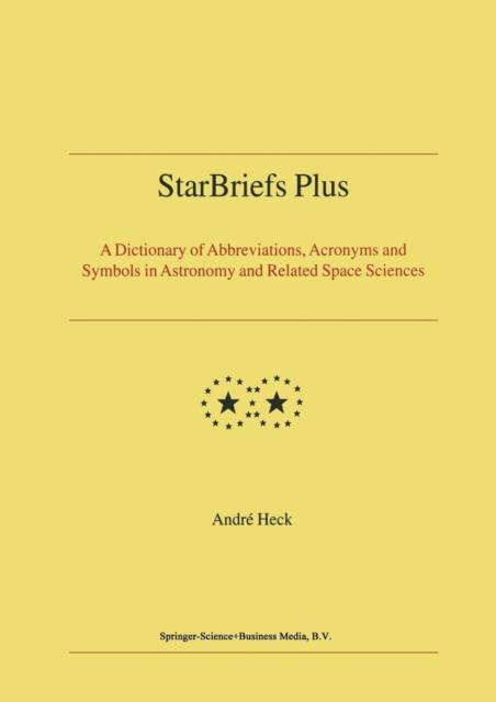 With about 200,000 entries, StarBriefs Plus represents the most comprehensive and accurately validated collection of abbreviations, acronyms, contractions and symbols within astronomy, related space sciences and other related fields. As such, this invaluable reference source (and its companion volume, StarGuides Plus) should be on the reference shelf of every library, organization or individual with any interest in these areas. Besides astronomy and associated space sciences, related fields such as aeronautics, aeronomy, astronautics, atmospheric sciences, chemistry, communications, computer sciences, data processing, education, electronics, engineering, energetics, environment, geodesy, geophysics, information handling, management, mathematics, meteorology, optics, physics, remote sensing, and so on, are also covered when justified. Terms in common use and/or of general interest have also been included where appropriate.