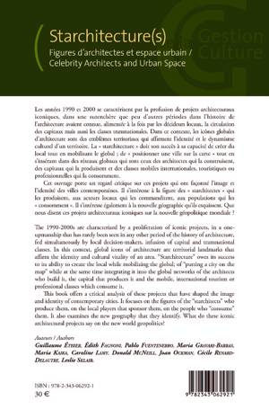 Les années 1990 et 2000 se caractérisent par la profusion de projets architecturaux iconiques, dans une surenchère que peu d'autres périodes dans l'histoire de l'architecture avaient connue. Cet ouvrage porte un regard critique sur ces projets qui ont façonné l'image et l'identité des villes contemporaines. Il s'intéresse à la figure des "starchitectes" qui les produisent, aux acteurs locaux qui les commanditent, aux populations qui les "consomment". Il s'intéresse également à la nouvelle géographie qu'ils esquissent. (Articles en français et en anglais).