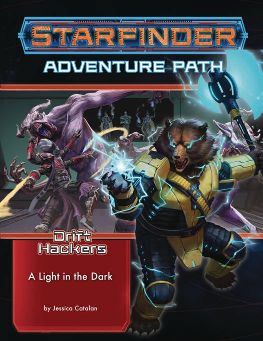 "A Light in the Dark" is a Starfinder adventure for four 7th-level characters, launching the 3-volume Drift Hackers Adventure Path. Drift Hackers is the exciting conclusion of the Drift Crisis, an event taking place across the entire Starfinder game line, in which faster-than-light travel breaks down and the galaxy is thrown into chaos. In addition to the adventure itself, this book includes a player's guide filled with character creation advice and new gear designed just for Drift Hackers players, along with an Adventure Toolbox filled with new rule options and strange alien creatures.