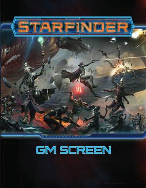 Starfinder GM Screen! This beautiful, four-panel screen features stunning artwork from Ignacio Bazán Lazcano on the players' side and a huge number of tools and tables on the GM's side to speed up play and keep key figures at your fingertips. With helpful rules and reminders about tactical and starship combat, skill Difficulty Classes, common conditions, environmental radiation, zero gravity, and more, this GM screen gives you the information you need to keep the game fast and fun. Constructed of ultra-high-grade hardcover-book stock, this durable screen is perfect for convention play or use in your regular home game.