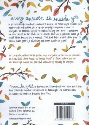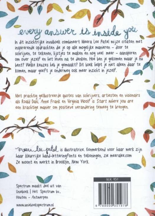 In dit inzichtrijke invulboek combineert Meera Lee Patel wijze citaten met inspirerende opdrachten die je op alle mogelijke manieren – door te schrijven, te tekenen, lijstjes te maken en nog veel meer – aansporen om over jezelf en het leven na te denken. Hoe ben je gekomen waar je nu bent? Welke keuzes heb je gemaakt? Dit boek helpt je niet alleen daar te komen, maar geeft je onderweg ook meer inzicht in jezelf.