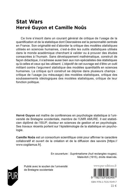 Ce livre s’inscrit dans un courant général de critique de l’usage de la quantification et de la statistique dont Desrosières est la personnalité centraleen France. Son originalité est d’aborder la critique des modèles statistiques utilisés en sciences humaines, c’est-à-dire les outils statistiques utilisés dans le monde académique cherchant à valider ou à prouver des études consacrées à l’humain. Sans développement mathématique, construit de façon didactique, il s’adresse aussi bien aux non-spécialistes des statistiques qu’à celles et ceux qui les utilisent. L’objectif de cet ouvrage est d’être un outil militant contre l’argument statistique des modèles quantitatifs en sciences humaines. La critique qu’il construit se déploie dans plusieurs champs : critique de l’usage (ou mésusage) des modèles statistiques, critique des soubassements idéologiques des modèles statistiques, critique de leur fonction politique.