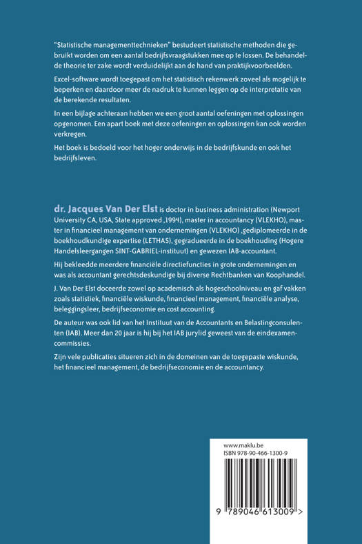 Excel-software wordt toegepast om het statistisch rekenwerk zoveel als mogelijk te beperken en daardoor meer de nadruk te kunnen leggen op de interpretatie van de berekende resultaten. In een bijlage achteraan hebben we een groot aantal oefeningen met oplossingen opgenomen. Een apart boek met deze oefeningen en oplossingen kan ook worden verkregen.