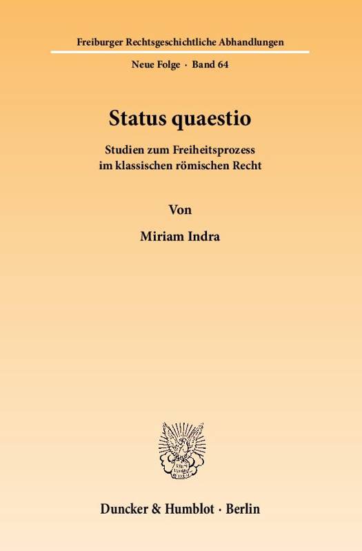 Miriam Indra beschäftigt sich mit der rechtlichen Ausgestaltung des Freiheitsprozesses im klassischen römischen Recht. Im Freiheitsprozess wurde um die Frage gestritten, ob ein Mensch frei oder Sklave war. Diese Prozessform gab es von den Anfängen des römischen Rechts bis zum nachklassischen Recht. Die Quellenlage zum klassischen Recht ist besonders kompliziert, da aufgrund weitreichender justinianischer Reformen die in den Institutionen, den Digesten und dem Codex Iustinianus überlieferten Quellen systematisch interpoliert wurden. Die Arbeit ist in drei Teile untergliedert. Im ersten Teil beschäftigt sich die Autorin mit dem Freiheitsprozess in den griechischen Rechten und den Einflüssen auf das frühe römische Recht. Im zweiten Teil, der den Hauptteil der Arbeit bildet, geht es um das Verfahren, die Prozessparteien, den Prozessablauf und das Urteil sowie seine Wirkungen im römischen Recht. Im dritten Teil werden die justinianischen Reformen und die daraus folgenden Veränderungen dargestellt. Die Autorin bezieht die 1981 entdeckte Lex Irnitana, die vorhergehenden Bearbeitungen noch nicht zur Verfügung stand, umfassend ein und zieht daraus Schlussfolgerungen für den Freiheitsprozess im klassischen römischen Recht. Dies führt zu einem Erkenntnisgewinn bei den unterschiedlichen Verfahrensformen im klassischen Freiheitsprozess und zu einem umfassenderen Bild vom Freiheitsprozess in den Provinzen. Von der Zeit des klassischen Rechts bis zum Zeitalter Justinians veränderte sich auch der Freiheitsprozess im Zuge des gesellschaftlichen Wandels. Justinian trug diesen Änderungen bei seinen Reformen Rechnung.