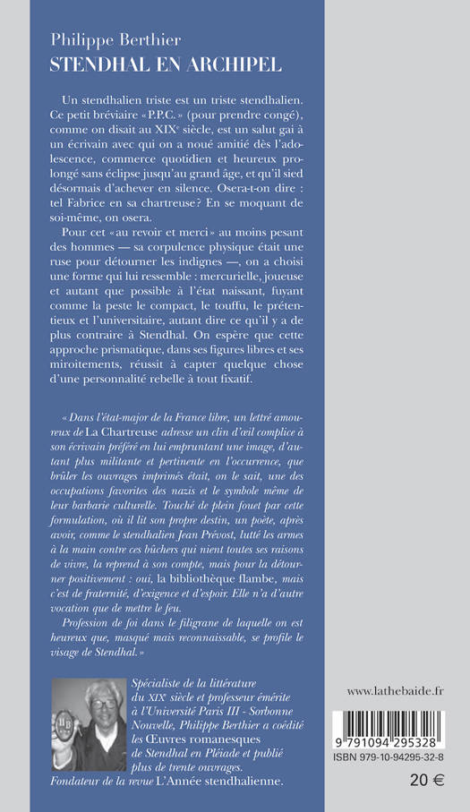 Un stendhalien triste est un triste stendhalien. Ce petit bréviaire « P.P.C. » (pour prendre congé), comme on disait au XIXe siècle, est un salut gai à un écrivain avec qui on a noué amitié dès l’adolescence, commerce quotidien et heureux prolongé sans éclipse jusqu’au grand âge, et qu’il sied désormais d’achever en silence. Osera-t-on dire : tel Fabrice en sa chartreuse ? En se moquant de soi-même, on osera. Pour cet « au revoir et merci » au moins pesant des hommes — sa corpulence physique était une ruse pour détourner les indignes —, on a choisi une forme qui lui ressemble : mercurielle, joueuse et autant que possible à l’état naissant, fuyant comme la peste le compact, le touffu, le prétentieux et l’universitaire, autant dire ce qu’il y a de plus contraire à Stendhal. On espère que cette approche prismatique, dans ses figures libres et ses miroitements, réussit à capter quelque chose d’une personnalité rebelle à tout fixatif.