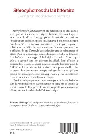 Stéréophonies du fait littéraire est une réflexion qui se situe dans la juste lignée des travaux sur la critique et la théorie littéraires. Organisé sous forme de débat, l'ouvrage pointe la nécessité de continuer l'enseignement des lettres aujourd'hui. Il analyse d'une part leur impact dans la société utilitariste contemporaine. Et, d'autre part, la place de la littérature au milieu de certaines sciences humaines plus concrètes et efficaces, dit-on. L'approche contradictoire tente de redynamiser les débats. Pour ce faire, chaque autrice donne au préalable sa définition de la littérature et son rapport à la discipline avant de préciser ce que celle-ci a apporté dans son parcours individuel. Pour affronter le contexte dans lequel s'inscrivent ces débats dans le deuxième quart du XXIe siècle, les autrices ont fait le choix d'une parole double. Elles proposent deux perspectives presque orthogonales sur ce qui peut pousser nos contemporaines et contemporains à porter une attention littéraire sur un objet textuel voire artistique. L'essai est en quelque sorte un plaidoyer pour les études littéraires dont la pertinence semble souvent remise en cause par les besoins de la société actuelle. Il perpétue de manière originale (en actualisant les débats), une tradition héritée de l'histoire critique.