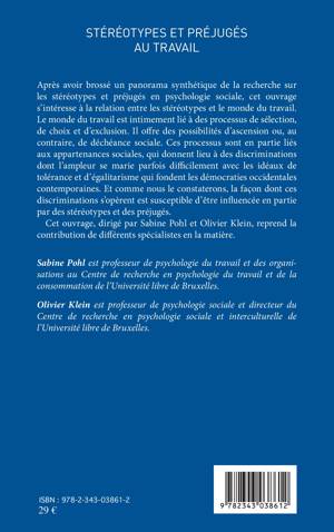 Quelle relation entre stéréotypes et monde du travail ? Le monde du travail est intimement lié à des processus de sélection, de choix, d'exclusion. Il offre des possibilités d'ascension ou de déchéance sociale. Ces processus sont liés aux appartenances sociales, qui donnent lieu à des discriminations. La façon dont ces discriminations s'opèrent est susceptible d'être influencée en partie par des stéréotypes et des préjugés.