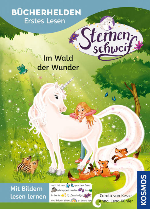Laura hat ein wunderbares Geheimnis: Ihr Pony Sternenschweif ist in Wirklichkeit ein Einhorn! Zusammen erleben die beiden Freunde viele magische Abenteuer.Laura und Sternenschweif reiten in einen verwunschenen Wald. An einem Bach wachsen überall Mondblumen. Das kann doch nicht sein. Eigentlich gibt es die magischen Blumen nur auf der geheimen Lichtung der Einhörner und Einhornfreunde! Deshalb sind viele Waldtiere zahm und begeben sich in Gefahr. Die Mondblumen müssen wieder zurückgebracht werden! Die beiden Freunde bekommen Hilfe. Ein spannendes Abenteuer zum Vor- und Mitlesen in der Vorschule. Pony, Mondblume, Wald, Bach, Lichtung: Welches Hauptwort versteckt sich hinter dem jeweiligen Bild? Großer Lese- und Ratespaß - mit einer Wörterliste zum Heraustrennen.Lesen lernen ist schwer? Nicht mit dieser spannenden Geschichte, die auch Leseanfängerinnen ab Klassenstufe 1 leicht bewältigen können. Illustrationen und ein Leserätsel am Ende jedes Kapitels machen den Band abwechslungsreich, sorgen für Erfolgserlebnisse und erhöhen die Lesemotivation. So macht der Einstieg ins selbstständige Bücherlesen einfach Spaß.