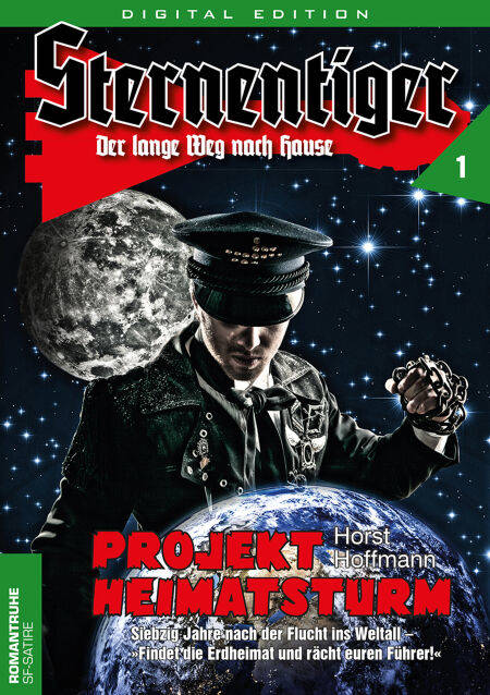 "Findet die Erdheimat und nehmt bittere Rache!" Im Frühjahr 1945, kurz vor Kriegsende, entdeckt das Geheime Wissenschaftskommando des Reichs das Geheimnis der Zeitreise und bringt von einem Vorstoß in die Zukunft die Unterlagen zum Bau eines Raumschiffs sowie von Klonfabriken mit. Der Führer lässt in aller Eile den Fluchtkreuzer WELTRAUMSTURM bauen und begibt sich mit seinen letzten Getreuen auf den "vorläufigen taktischen Rückzug", wobei sie Klondoubles von sich zurücklassen, um die anrückenden Feinde zu täuschen. Nach 65 Jahren Tiefschlaf landen sie auf dem erdähnlichen Planeten Neu-Germanien, wobei leider alle kosmischen Daten der Erdheimat verloren gehen. Erst fünf Jahre später, genau auf den 125. Geburtstag des Führers am 20. April 2014, wird eine TV-Sendung von der Erde empfangen, offenbar eine Übertragung aus einer Irrenanstalt mitten im australischen Dschungel. Der Führer erleidet einen so heftigen Tobsuchtsanfall, dass er sich davon nicht mehr erholt. Auf seinem Sterbelager beauftragt er seinen Zögling und Vertrauten, Generaloberst Julius Strammer, die Erdheimat wiederzufinden, vom vermutlichen bolschewistischen Joch zu befreien und das Reich neu zu errichten. Am 2. August.2014 bricht Strammer mit dem mächtigen Raumschiff STERNENTIGER auf, um die Erdheimat im Sternengewimmel der Galaxis zu finden und den Auftrag des Führers auszuführen. Es ist der Beginn einer langen, unglaublichen Suche voller Überraschungen, seltsamer Aliens, kurioser Abenteuer und heldenhafter Kämpfe gegen einen übermächtig erscheinenden Feind, die Interstellare Solidarität, der inzwischen die halbe Galaxis beherrschenden bolschewistischen Kriegsgewinner. Die neue, große Weltraumsatire des PERRY RHODAN-Autors Horst Hoffmann!