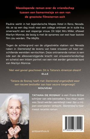 Tegen de achtergrond van de uitgestrekte vlakten van Nevada raken in Sterrenstof de levens van twee vrouwen uit heel verschillende werelden vervlochten. Deze ontroerende roman is een ode aan de allesoverstijgende kracht van vrouwenvriendschap en schetst een intiem portret van een niet eerder getoonde kant van Marilyn Monroe.