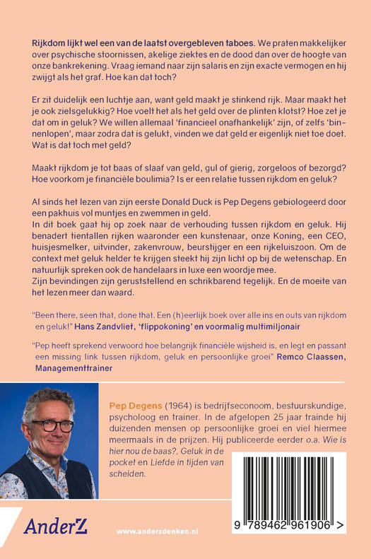 Geld én geluk, kan dat samengaan? In dit boek gaat Pep Degens in gesprek met echt rijke mensen, gelukswetenschappers, en zij die zakendoen met de well-to-do. Ook toetst hij inzichten bij neurologische en psychologische onderzoekers op zoek naar het antwoord op de vraag: Moeten we rijkdom omarmen of overslaan op weg naar geluk? En is het ooit genoeg, of mag het altijd nog ietsje meer zijn?