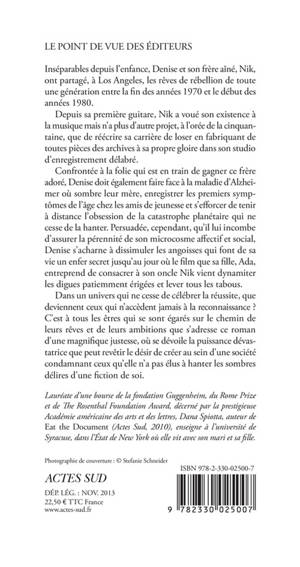 Dans un univers qui ne cesse de célébrer la réussite, que deviennent ceux qui n'accèdent jamais à la reconnaissance ? C'est à tous les êtres qui se sont égarés sur le chemin de leurs rêves et de leurs ambitions que s'adresse ce roman d'une magnifique justesse, où se dévoile la puissance dévastatrice que peut revêtir le désir de créer au sein d'une société condamnant ceux qu'elle n'a pas élus à hanter les sombres délires d'une fiction de soi.