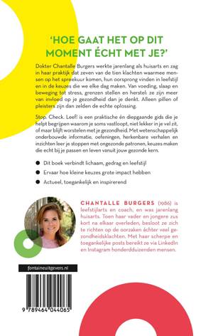 Acht van de tien klachten waarmee mensen bij de huisarts komen, vinden hun oorsprong in leefstijl en in de duizenden keuzes die we elke dag maken. Van voeding, slaap en beweging tot stress, grenzen stellen en herstel: het zijn thema’s die iedereen herkent. Huisarts Chantalle Burgers zag in haar praktijk dat pillen of pleisters in deze gevallen zelden de echte oplossing zijn. Ze ontwikkelde daarom een heldere, praktische en motiverende aanpak waarmee je onderzoekt hoe je stopt met ongezonde patronen, keuzes maakt die echt bij je passen en gaat leven vanuit jouw gezonde kern. Zo liggen een betere balans en meer energie binnen handbereik voor iedereen. Een actueel, toegankelijk en inspirerend boek dat lezers laat ervaren hoe kleine keuzes grote impact hebben.