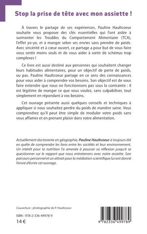 À travers le partage de ses expériences, Pauline Haultcoeur souhaite vous proposer des clés essentielles qui l'ont aidée à surmonter des Troubles du Comportement Alimentaire (TCA) et de l'effet yo-yo, à manger selon son envie sans prendre de poids. Avec sincérité et à coeur ouvert, ce partage a pour but de vous faire vous sentir moins seuls et de vous aider à sortir de schémas trop complexes ! Ce livre est aussi destiné aux personnes qui souhaitent changer leurs habitudes alimentaires, pour un objectif de perte de poids, ou pas. Pauline Haultcoeur partage en ce sens des connaissances pour vous aider à comprendre vos besoins. Son objectif est de vous faire entendre que nous ne fonctionnons pas sous la contrainte: il est légitime de manger ce que vous voulez, sans culpabiliser, tout simplement en répondant à vos besoins. Cet ouvrage présente aussi quelques conseils et techniques à appliquer si vous souhaitez perdre du poids de manière saine. Vous comprendrez qu'il peut être simple de moduler votre poids sans vous affamer et en prenant plaisir dans votre alimentation.