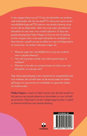 In 'Stop met people pleasing' van Hailey Magee ontdek je hoe je jezelf kunt bevrijden van pleasegedrag en leer je jezelf op de eerste plaats te zetten. Je leert hoe je wél nee kunt leren zeggen, hoe je je niet altijd verantwoordelijk hoeft te voelen voor de verlangens en belangen van anderen en hoe je jezelf niet moet verstoppen om anderen te pleasen. Magee leert ons hoe we met dit gedrag kunnen stoppen door onze eigen behoeften en verlangens te leren kennen, onszelf voorop te stellen en onze schuldgevoelens te overwinnen. Ze verkent vragen zoals: Hoe stel ik grenzen zonder mijn inlevingsvermogen te verliezen? En: Wanneer gaat mijn vriendelijkheid over in people pleasen? 'Stop met people pleasing' is een toegankelijk en inspirerend boek voor iedereen die zichzelf weer op de eerste plaats wil zetten, autonomie en zelfrespect wil ontwikkelen en gezonde relaties wil onderhouden. Van rasechte ja-knikkers tot vergevorderde people pleasers: met 'Stop met people pleasing' leert iedereen die té veel pleast dit gedrag voor eens en altijd in de ban te doen.
