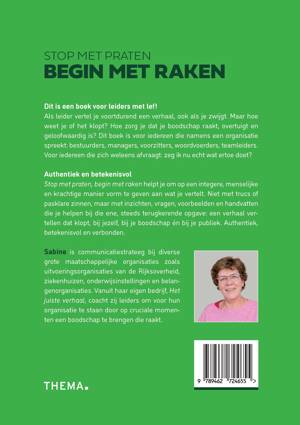 Stop met praten, begin met raken helpt je om op een integere, menselijke en krachtige manier vorm te geven aan wat je vertelt. Niet met trucs of pasklare zinnen, maar met inzichten, vragen, voorbeelden en handvatten die je helpen bij die ene, steeds terugkerende opgave: een verhaal vertellen dat klopt, bij jezelf, bij je boodschap én bij je publiek. Authentiek, betekenisvol en verbonden.