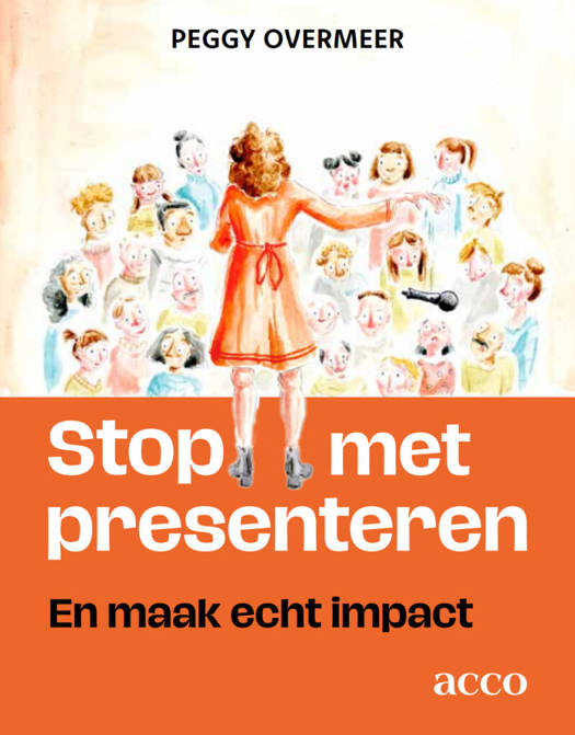 Stop met presenteren is een pocketgids over, ja toch, presenteren. Met de tips en tricks van ervaren sprekerscoach Peggy Overmeer leer je hoe je een sterke presentatie geeft en zelfzeker voor de groep staat. Van voorbereiding tot schitteren op de planken.