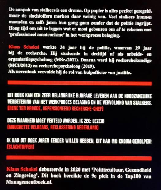 Dit boek kan een zeer belangrijke bijdrage leveren aan de noodzakelijke verbetering van het werkproces belaging en de vervolging van stalkers.