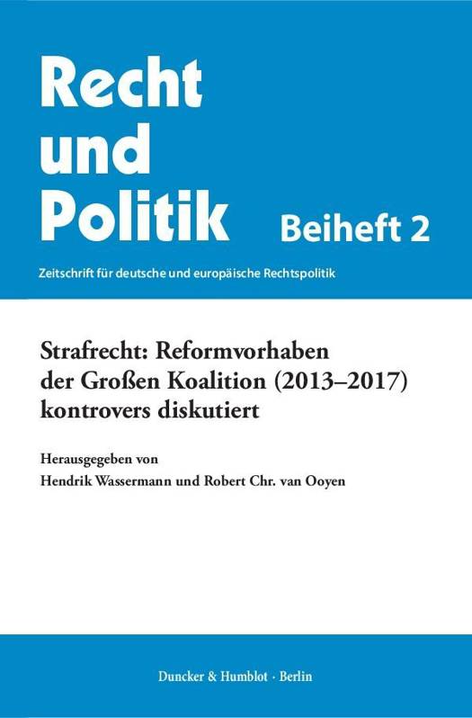 Mit einer beispiellosen Niederlage wurde im September 2017 die Groae Koalition aus CDU/CSU und SPD abgewahlt. Entgegen dem in der Offentlichkeit vorherrschenden Eindruck einer bleiernen Zeit wurden jedoch fast 100 Gesetzesentwurfe des Bundesjustizministeriums beschlossen deutlich mehr als wahrend der vorangegangenen konservativ-liberalen Regierungskoalition und gerade auch im Bereich des Strafrechts. Viele dieser Reformen wurden in Recht und Politik ausfuhrlich diskutiert. Die vorliegende Auswahl zieht eine Bilanz der abgeschlossenen und andauernden strafrechtlichen Kontroversen der 18. Legislaturperiode. Insgesamt zeigt der rechtspolitische Befund, dass die GroKo den seit Jahren bestehenden Trend zur Vorverlegung der Strafbarkeit und Verscharfung des Strafrechts fortgesetzt hat.