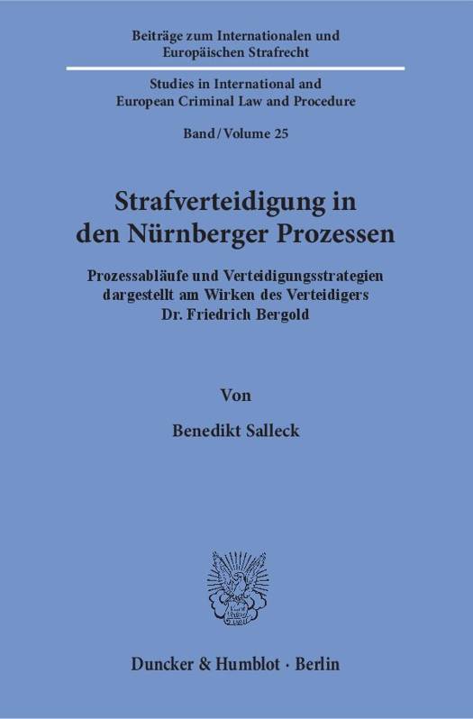 Die zentrale Themenstellung betrifft die Frage, in welchem Maße die Verteidigung in den Nürnberger Prozessen tatsächlichen Einfluss auf den Prozessverlauf und -ausgang nehmen konnte. Hierbei wird neben den Grundlagen der Verteidigungsarbeit auch auf Fragen der Rechtsstaatlichkeit bzw. Fairness der Verfahren eingegangen. Die juristische Arbeit der Verteidiger in den Nürnberger Prozessen ist bisher kaum erforscht. Im Kern der Arbeit steht daher die Auseinandersetzung mit konkreten Prozesssituationen, deren Darstellung und Einordnung unter besonderer Berücksichtigung der Verteidigung anhand von Primärquellen, vornehmlich der originalen Prozessprotokolle. Die Arbeit des Nürnberger Verteidigers Friedrich Bergold im Hauptprozess sowie in drei Nachfolgeprozessen wird insbesondere dahingehend aufbereitet, inwieweit Verteidigungsstrategien entwickelt und umgesetzt werden konnten. In einer abschließenden Betrachtung werden die gewonnenen Ergebnisse zusammengeführt und prozessübergreifend ausgewertet.