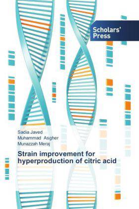 In this study hyper-production of citric acid Aspergillus niger was carried out using agro-industrial residues as carrier substrates in solid state fermentation (SSF) of sucrose molasses medium. It was concluded from this study that banana stalk was a good carrier substrate among the six substrates (Corncobs, corn stover, wheat straw, wheat bran and sugarcane bagasse) used for citric acid production in SSF of molasses medium and SSF gave higher citric acid production as compared to liquid state fermentation (LSF). Mutants of Aspergillus niger were produced through UV irradiations, Ethyle methane sulfonate (EMS) and Ethidium bromide (EB) for different time periods and Among the different mutants selected using selective marker, EB treated mutant Aspergillus niger EB-3 (treated for 90 minutes) was the best mutant for enhanced production of citric acid. Moreover, citric acid production by the mutant could be substantially enhanced to 112 mg/mL by careful optimization of the SSF parameters and by the addition of different metabolic inhibitors and metal ion complexing compounds.