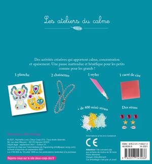 Une mini-boîte qui contient 2 porte-clefs kawaii à réaliser : un adorable koala et un petit renard à l'aide de 2 chaînettes, 400 mini-strass de 3 couleurs différentes , 10 grands strass de formes et de couleurs différentes, 1 carré de cire, 1 stylet. Grâce aux strass, l'enfant décore ses 2 porte-clefs, à l´aide du stylet fourni. Il peut ensuite coller ses strass où il le souhaite !