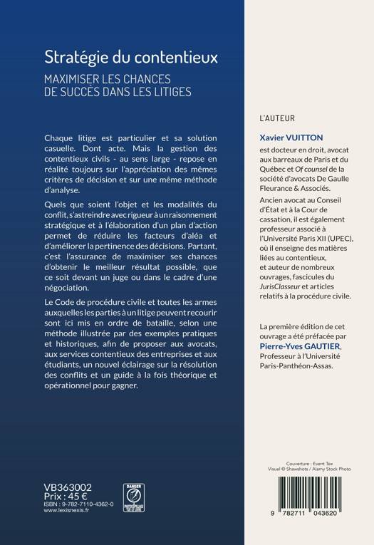 Cet ouvrage expose les qualités que doit présenter un raisonnement stratégique en matière de contentieux et les éléments qui conditionnent les décisions à prendre pour « gagner » et défendre aux mieux ses intérêts.