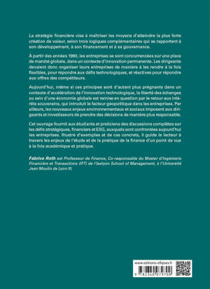 La stratégie financière d’une entreprise vise à maîtriser les moyens d’atteindre la plus forte création de valeur, selon trois logiques complémentaires qui se rapportent à son développement, son financement et sa gouvernance.