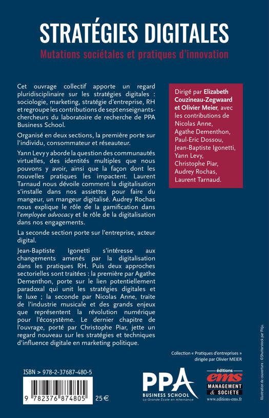 Cet ouvrage collectif apporte un regard pluridisciplinaire sur les stratégies digitales : sociologie, marketing, stratégie d'entreprise, RH et regroupe les contributions de sept enseignants-chercheurs du laboratoire de recherche de PPA Business School.