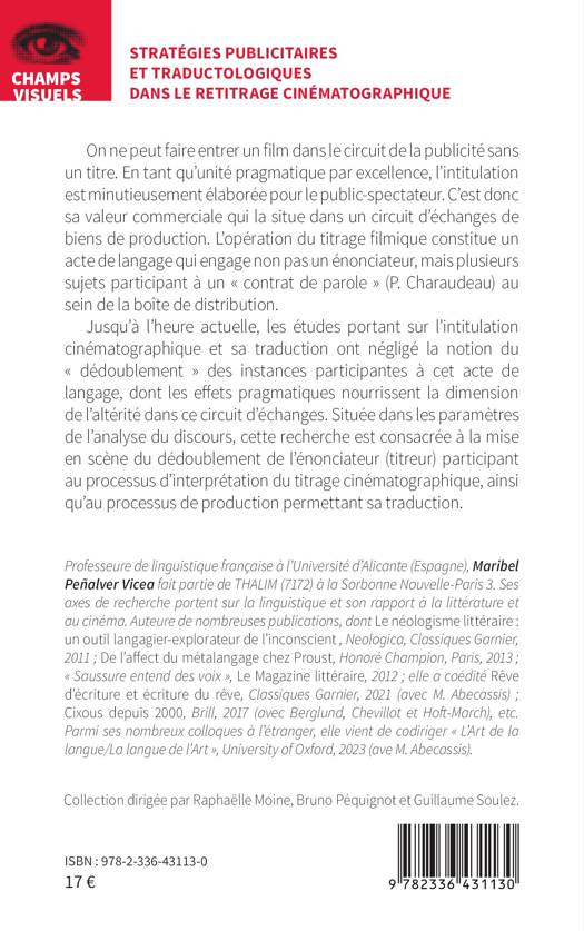 On ne peut faire entrer un film dans le circuit de la publicité sans un titre. En tant qu'unité pragmatique par excellence, l'intitulation est minutieusement élaborée pour le public-spectateur. C'est donc sa valeur commerciale qui la situe dans un circuit d'échanges de biens de production. L'opération du titrage filmique constitue un acte de langage qui engage non pas un énonciateur, mais plusieurs sujets participant à un contrat de parole (P. Charaudeau) au sein de la boîte de distribution. Jusqu'à l'heure actuelle, les études portant sur l'intitulation cinématographique et sa traduction ont négligé la notion du dédoublement des instances participantes à cet acte de langage, dont les effets pragmatiques nourrissent la dimension de l'altérité dans ce circuit d'échanges. Située dans les paramètres de l'analyse du discours, cette recherche est consacrée à la mise en scène du dédoublement de l'énonciateur (titreur) participant au processus d'interprétation du titrage cinématographique, ainsi qu'au processus de production permettant sa traduction.