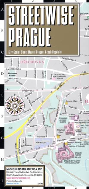 REVISED NOV 2017 Streetwise Prague Map is a laminated city center map of Prague, Czech Republic. The accordion-fold pocket size travel map has an integrated metro map featuring lines & stations, trams and streetcar routes. Coverage includes: Main Prague Map 1:10,000 Prague Metro MapDimensions: 4" x 8.5" folded, 8.5" x 32" unfolded Prague has become one of Europe's most popular destinations, for business and pleasure. The 1100 year old Prague castle watches over the compact medieval center city from its perch high above the city. The stretch from the district of Prague Castle down to and across the Charles Bridge is an unforgettable walk. With the STREETWISE(R) Prague Map in hand, make your way from Golden Lane, a row of tiny homes and workshops dating back to the 16th century past Valdstejnská zahrada (the Wallenstein Gardens), baroque gardens tucked behind the high walls of the Wallenstein Palace; and across Charles Bridge built in 1357 and lined with the statues of saints. There are the five other historic districts of Prague: Hradcany, home to the Loreta Church and the Loreta Treasure, sacred objects from the 16th-18th centuries; Mala Strana, the Lesser Town or Small Quarter; Staré Mesto, the old gothic quarter of Old Town; Nove Mesto or New Town; Josefov, the former Jewish ghetto dating back to the 13th century; and Vysehrad, an area of landscaped gardens and castle ruins said to be the seat of Czech Princes in the 11th century. The whole maze of streets connecting the first five districts is best explored on foot. A Prague Metro map, included in our STREETWISE(R) Prague Map shows the way to Vysehrad. An evening in Prague is a buffet of lively offerings. Whether you are into tasting a frosty Pilsner beer in a back street café, seeing an opera at the Estates Theatre, where Mozart premiered Don Giovanni in 1787 or relaxing with a classic music concert played in one of the many Baroque churches, Prague will tempt you to remain awake long into the night. The index of hotels, palaces, churches, restaurants, metro and more on our STREETWISE(R) Prague Map will insure you are well taken care of while visiting the city. The pocket size map of Prague is laminated for durability and accordion folding for effortless use. For a selection of the best hotels and restaurants in Prague, try the MICHELIN Guide Main Cities of Europe. For driving or to plan your trip to and from Prague, use the Michelin Czech & Slovak Republic Road and Tourist Map No. 731.