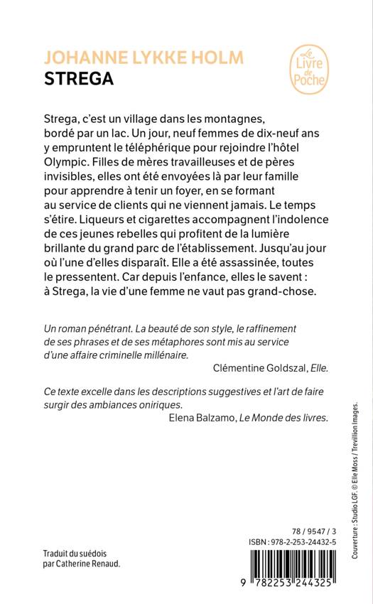 Strega, c’est un village dans les montagnes, bordé par un lac. Un jour, neuf femmes de dix-neuf ans y empruntent le téléphérique pour rejoindre l’hôtel Olympic. Filles de mères travailleuses et de pères invisibles, elles ont été envoyées là par leur famille pour apprendre à tenir un foyer, en se formant au service de clients qui ne viennent jamais. Le temps s’étire. Liqueurs et cigarettes accompagnent l’indolence de ces jeunes rebelles qui profitent de la lumière brillante du grand parc de l’établissement. Jusqu’au jour où l’une d’elle disparaît. Elle a été assassinée, toutes le pressentent, car depuis l’enfance, elles le savent : la vie d’une femme ne vaut pas grand-chose, à Strega.