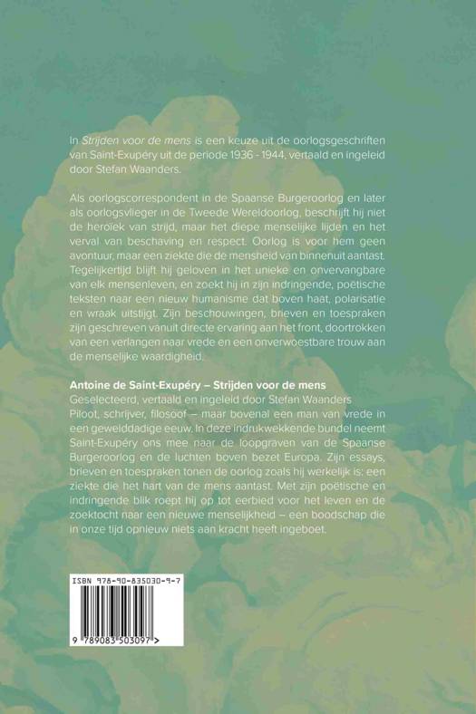 Antoine de Saint-Exupéry kennen wij vooral als de dichter van De kleine prins. Hij was echter niet alleen een dichter, maar tevens een denker en een man van de daad. In deze selectie van teksten, voor het eerst in het Nederlands vertaald, volgen wij zijn soms wanhopige zoektocht naar menselijkheid in tijden van geweld. Hij formuleert waarom deze strijd niet ontlopen kan worden. Zijn boodschap wint aan gewicht en geloofwaardigheid, doordat hij met zijn eigen leven borg stond voor zijn boodschap. Strijden voor de mens. Oorlogsgeschriften (1936-1944) is een indringend getuigenis van Europese humaniteit, dat door de huidige oorlog in Oekraïne opnieuw pijnlijk actueel is.