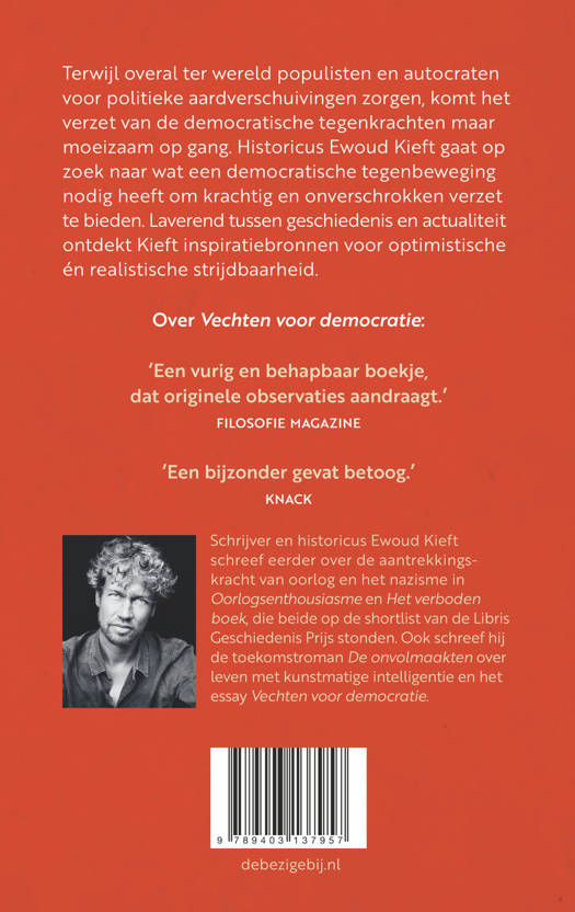 Terwijl overal ter wereld populisten en autocraten voor politieke aardverschuivingen zorgen, komt het verzet van de democratische tegenkrachten maar moeizaam op gang. Historicus Ewoud Kieft gaat op zoek naar wat een democratische tegenbeweging nodig heeft om krachtig en onverschrokken verzet te bieden. Laverend tussen geschiedenis en actualiteit ontdekt Kieft inspiratiebronnen voor optimistische én realistische strijdbaarheid.