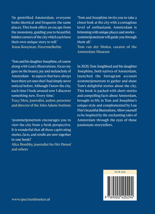 "@ommetjemettom teaches you to see the city in a different way. How wonderful that all these beautiful stories, facts, and walks have now been brought together in a book!" — Alice Boothby, journalist for Het Parool, among others